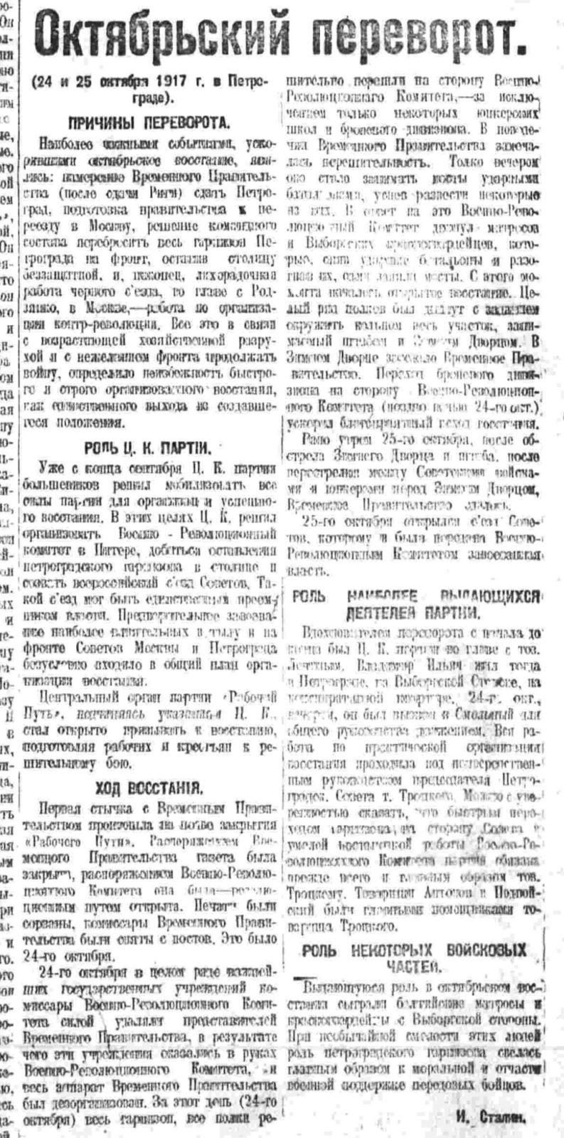 И. Сталин. Октябрьский переворот // Правда. – 1918. – № 241 (6 ноября). – С. 2.